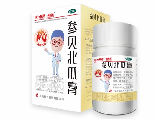 參貝北瓜膏 【成分】北瓜清膏、黨參、浙貝母、南沙參、生姜,輔料為飴糖。 【性狀】本品棕褐色稠厚的半流體...